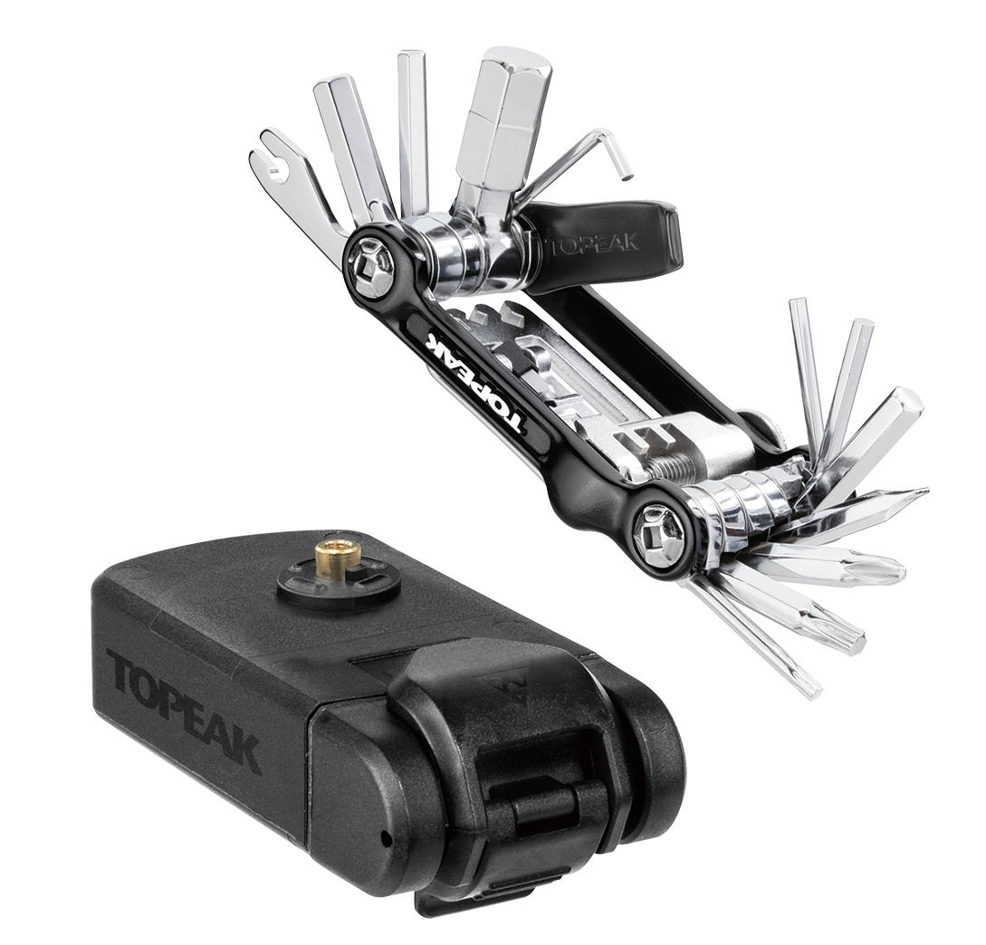 Pritrdi se pod nosilec za bidon Ninja z zamenljivim nosilcem ali pa ga pritrdite samostojno na okvir kolesa. Ta vremensko odporna škatla vsebuje 23-funkcijsko mini orodje za osnovna popravila in vzdrževanje.