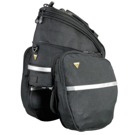 Dvojno oblikovane stranske plošče so združene s prožno tkanino debeline 600 denijev, da tvorijo poltogo, vremensko odporno torbo za na prtljažnik. Razdeljen glavni predal in stranske plošče se razširijo za dodatno zmogljivost shranjevanja. Zadnje držalo za steklenico vode vam omogoča, da nosite več vode na daljših potovanjih. Pritrdi se na stojalo s trakovi ali uporabite integrirano ploščo za hitro in enostavno namestitev adapterja KLICKfix® / Racktime® Snapit ali MIK®.